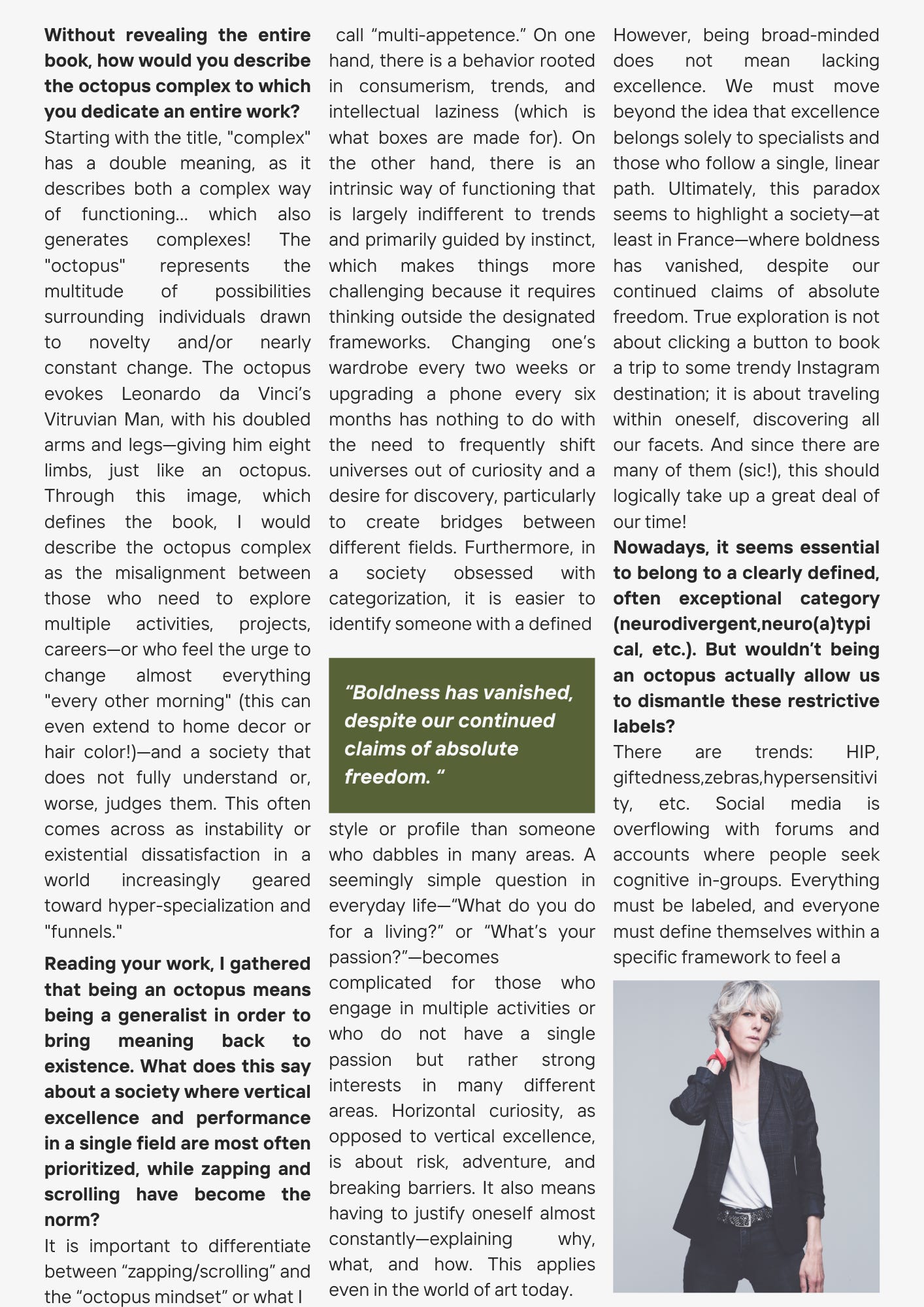 Here we are. This need to break down barriers has been within me forever. I have always felt out of frame, on the sidelines, with an almost obsessive drive to expand the horizon. The idea of studying just one field seems terrifying to me. I need to OPEN. To throw open windows and gaps to breathe, to learn, endlessly. BREAKING BOUNDARIES. And that’s what I love about this theory with its evocative totem animal. At first glance, it might seem like just another box in which to categorize a certain group of people. But in reality, it concerns everyone—as long as they are willing. The willingness to say, "ah oui?!" (oh really?!) —a spark of curiosity that I hope you will find here.